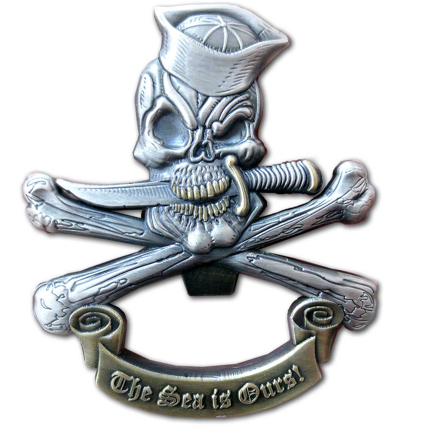 US Navy Jolly Roger Skull Collectible Challenge Coin Bottle Opener. When it comes to military challenge coins designed for the men and women of the United States Navy then you need to check out this US Navy Jolly Roger Skull Collectible Challenge Coin Bottle Opener. Military-Outfitters.Com for many years has been one of the leading challenge coin companies in the industry producing unique and original military challenge coin artwork. We offer hundreds of challenge coins designed by US military Veterans. Each of these military coins have defined a new generation of challenge coins from the special treatment of 3d visual effects and etching to the thickness and incredible detail found in these coins.