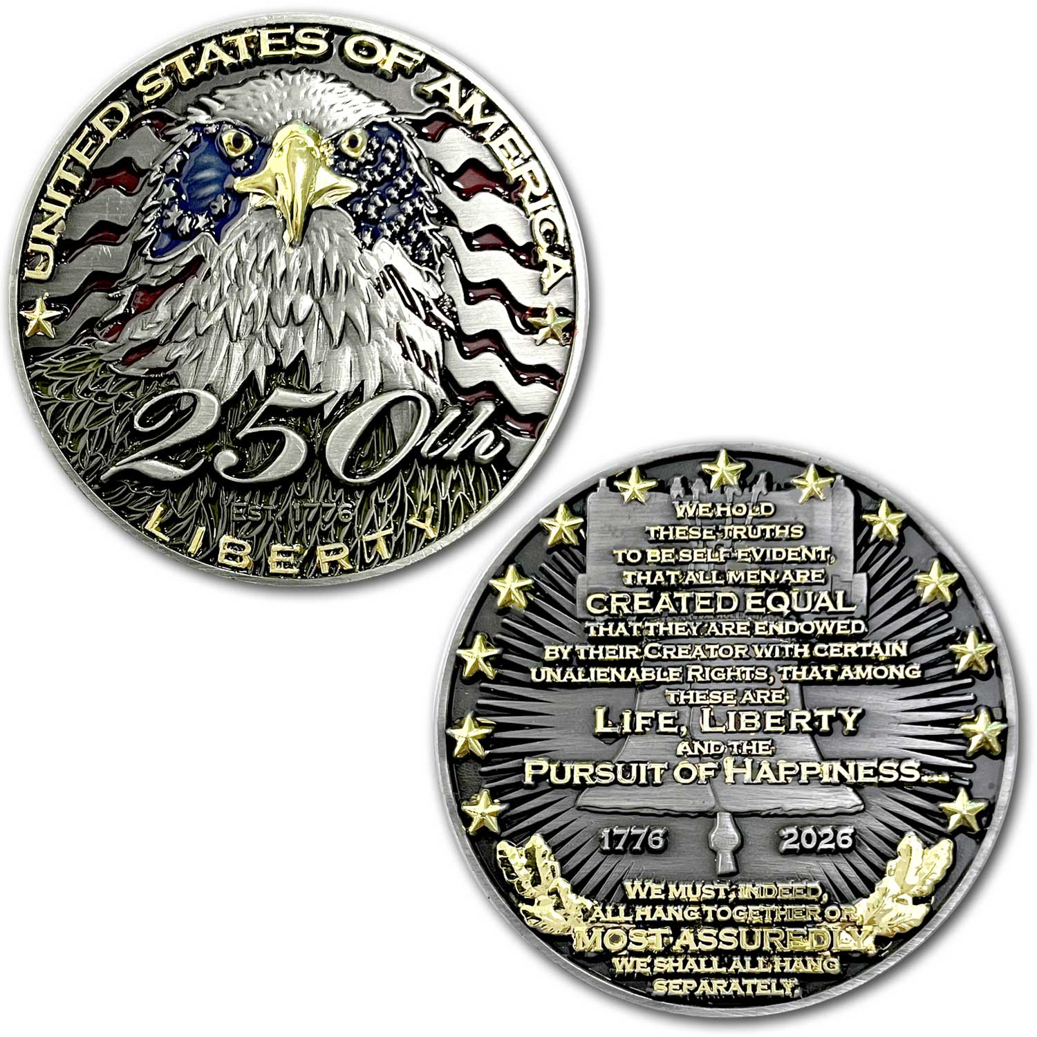 Carry the spirit of 76, the might of America, and the proud legacy of the United States of America with this one-of-a-kind commemorative coin.