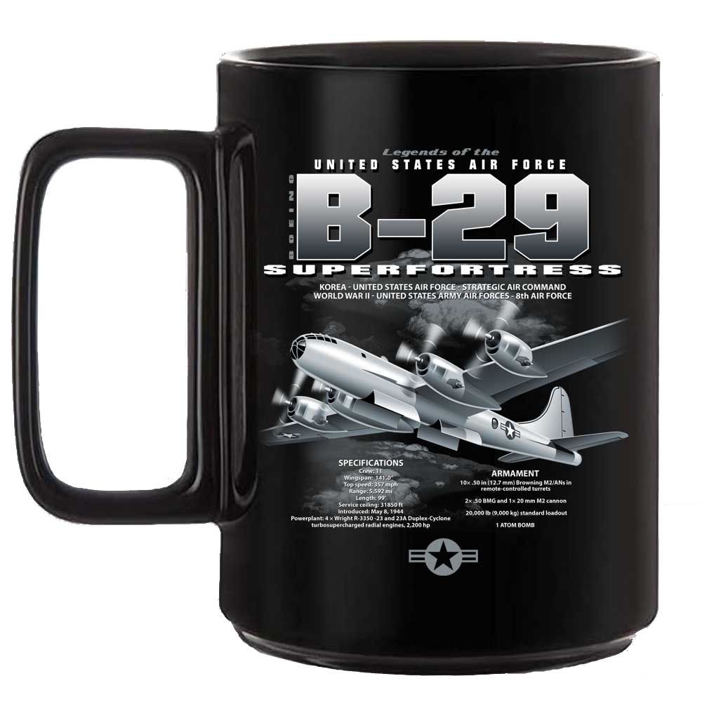 B-29 Superfortress Bomber Air Force Veteran Black or White 15 oz Ceramic Custom Coffee Mug