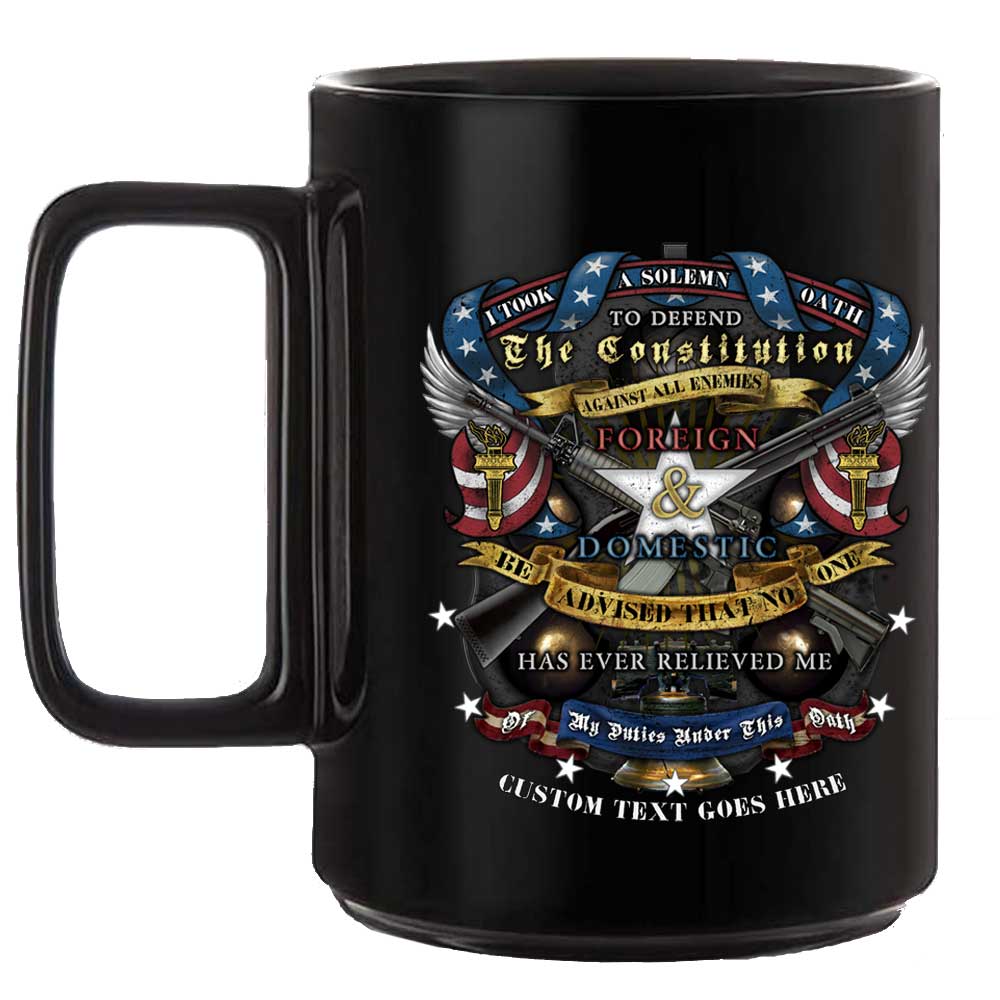 Oath To the U.S. Constitution Veteran Black or White 15 oz Ceramic Custom Coffee Mug