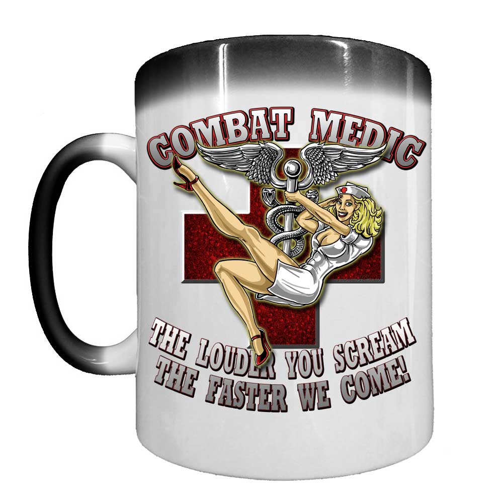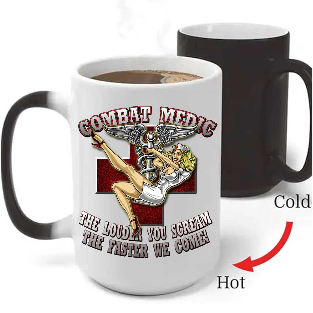 Combat Medic The louder You Scream The Faster We Come Army Veteran 15oz Heat-Activated Ceramic Custom Coffee Mug