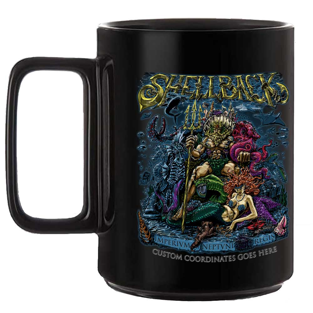 Shellback Court of King Neptune Veteran Black or White 15 oz Ceramic Custom Coffee Mug