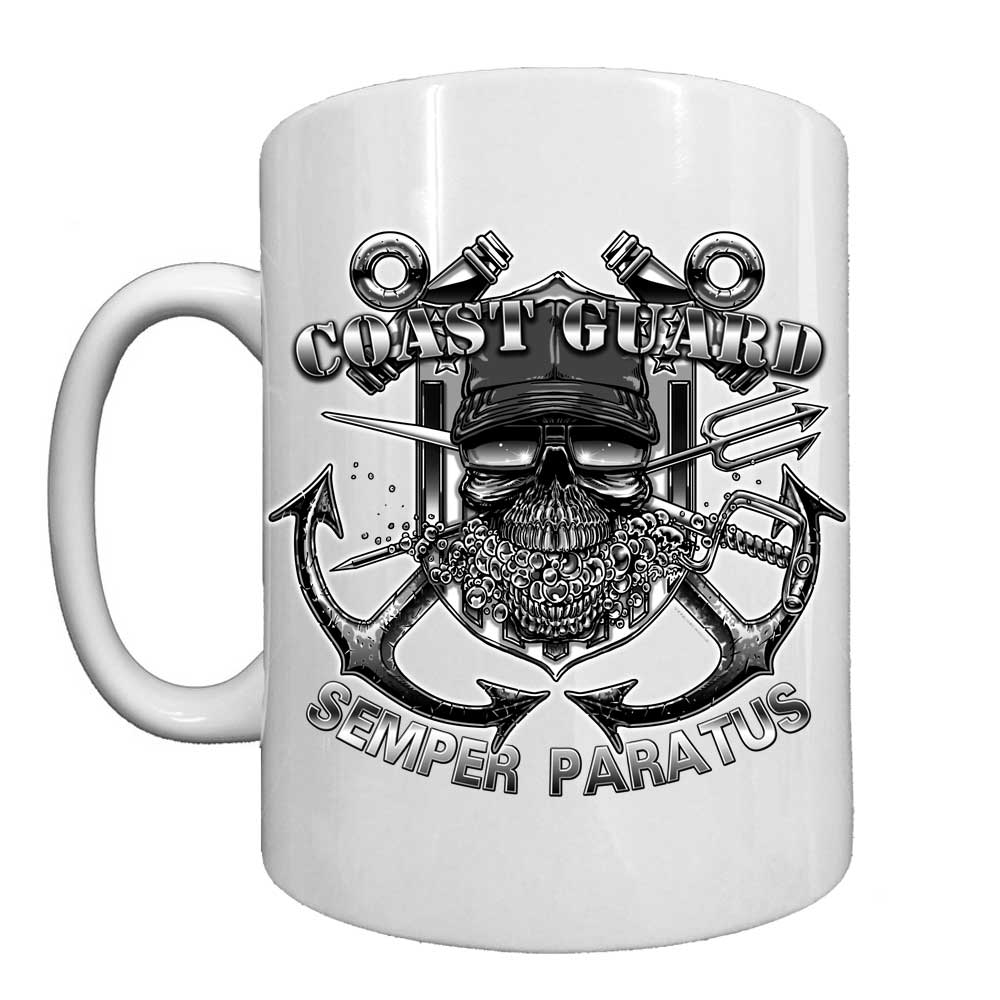 Coast Guard Semper Paratus Veteran 15oz Ceramic Black or White Custom Coffee Mug